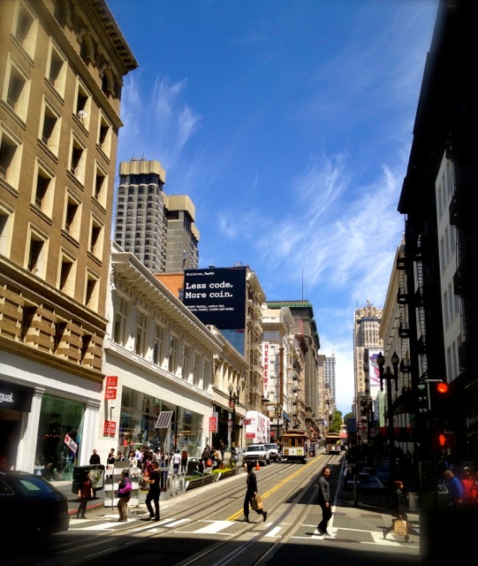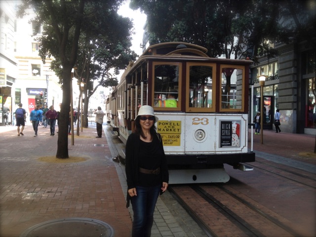 サンフランシスコは霧の街でした。ダウンジャケットを着なければ寒いほどの気候。暑がりの私には最高の気温。この街でとにかく私が驚いたのは、あの急な坂の道路でした。