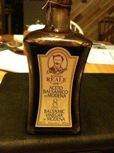 お誕生日のお祝いにM姉より頂いたバルサミックビネガーです。もうむちゃくちゃおいしいです。 バルサミックビネガーと言えばモデナ産が一番のようですね。あのちょっとドロっとした甘みのあるビネガーを、サラダのドレッシングにして食べました。アイスクリームにかけてもおいしいですね。 時間をかけて香りのよい木の樽のなかで熟成したバルサミックは、上質のワインのように高級な味わいです。(私は下戸なのでワインは飲めませんが) M姉、最高のビネガー、ありがとうございました。大切に使わさせて頂きます。 マダム