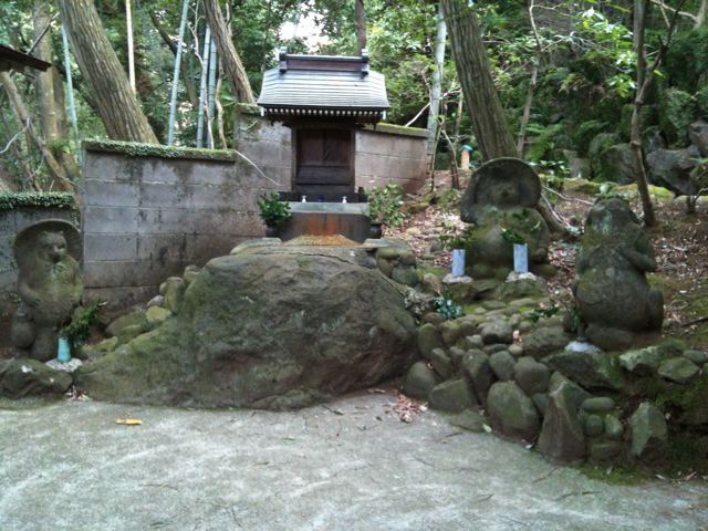 日本滞在中に万葉公園を散歩していたら見つけました!”担々焼きそば”の元祖、たんたん狸ちゃん。公園の中に、狸福神社と言うものが、あって、そこにいました。狸の夫婦。